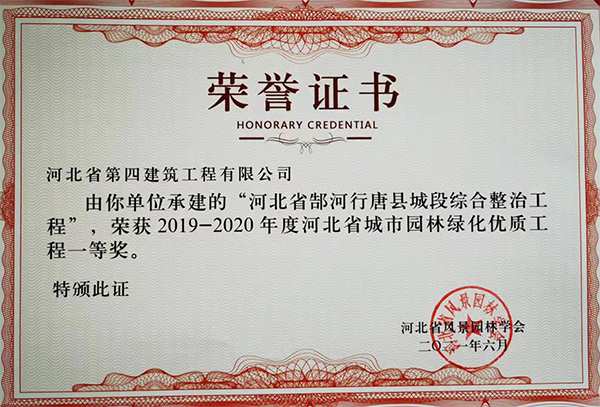 10月19日至20日,由河北省风景园林学会主办的第四届六次常务理事会、四次理事会暨2020年年会在唐山召开。会上,由八分公司承建的“河北省郜河行唐县城段综合整治工程”,被评为2019-2020年度河北省城市园林绿化优质工程一等奖。这是继荣获石家庄市兴石杯(市优)工程奖之后,该项目获得的又一奖项,为公司工程荣誉墙再添一抹色彩。